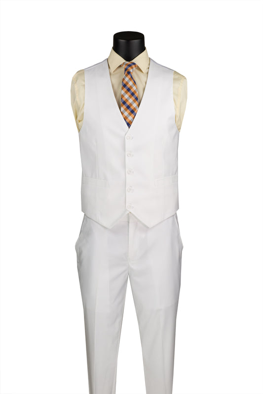 Vinci 3pc Slim Fit Single Breasted 2 button Suit (White)