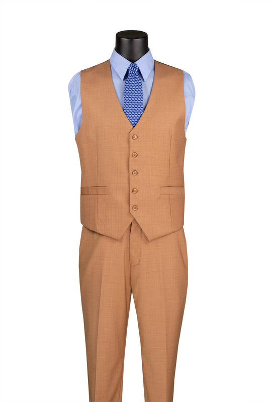 Vinci 3pc Solid Texture Regular Fit Suit (Light Amber)