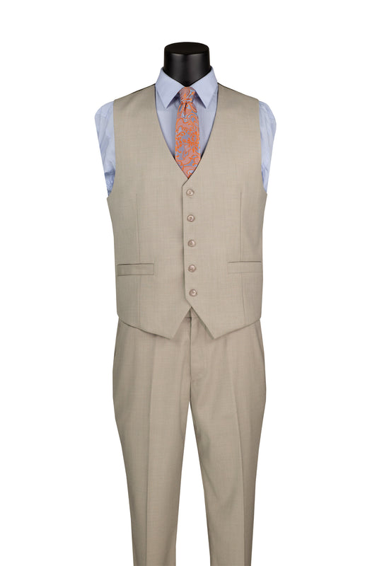 Vinci 3pc Slim Fit w/Stretch Arm Hole Suit (Beige)