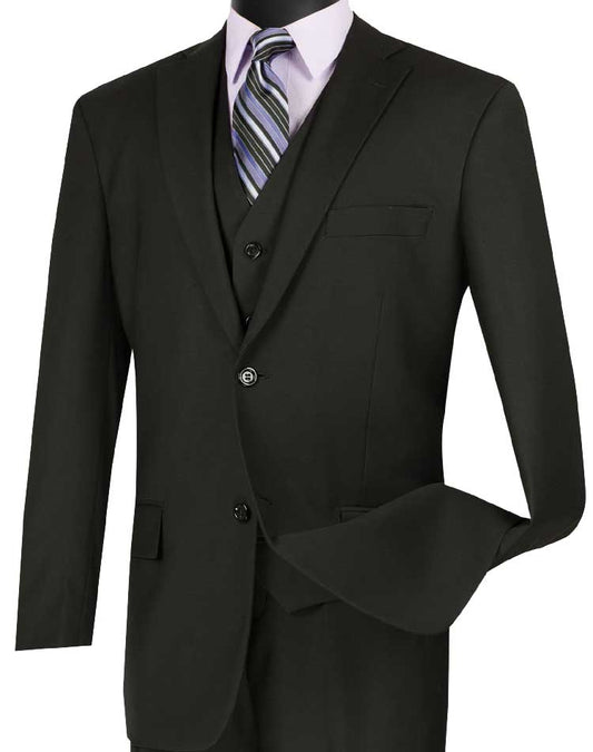 Vinci 3pc Super Stretch Fabric w/Adjustable Waistband Suit (Charcoal Black)