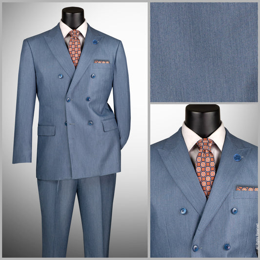 Vinci Classic Fit Double Breasted Suit w/Adjustable Waistband (Smoke Blue)
