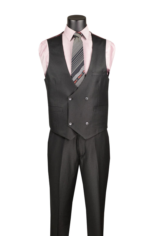 Vinci Classic Fit 3pc w/Double Breasted Vest + Adjustable Waistband (Black)
