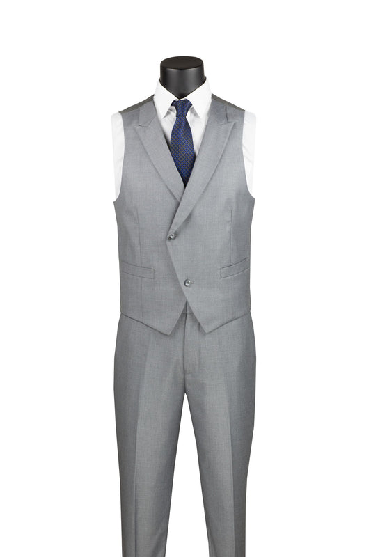 Vinci 3pc Modern Fit w/Lapel Vest & Adjustable Waistband Suit (Light Gray)