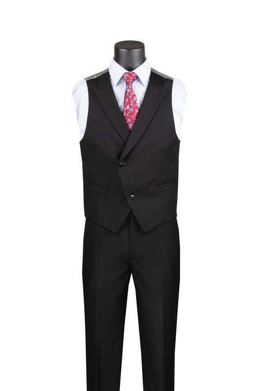 Vinci 3pc Modern Fit w/Lapel Vest & Adjustable Waistband Suit (Black)