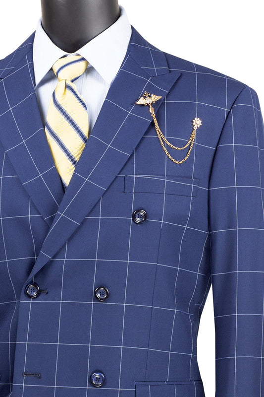 Vinci Double Breasted Modern Fit Windowpane Suit (Blue)