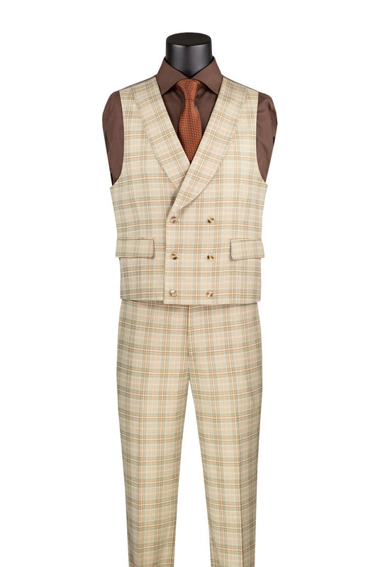 Vinci Modern Fit 3pc Notch Lapel w/DB Vest Suit (Tan)