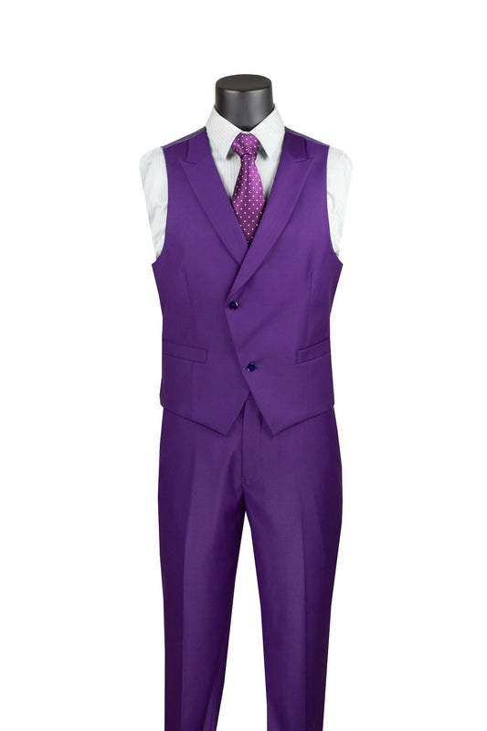 Vinci Modern Fit 3pc w/Peak Lapel DB Vest Suit (Purple)