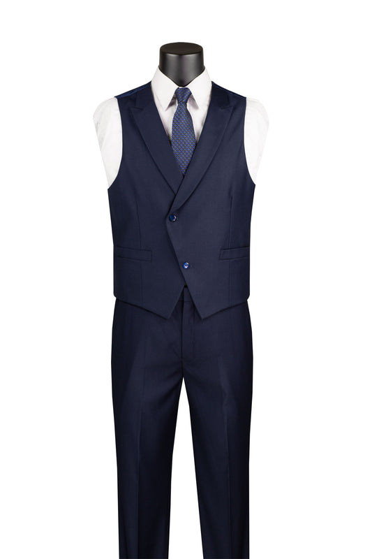 Vinci 3pc Modern Fit w/Lapel Vest & Adjustable Waistband Suit (Navy)