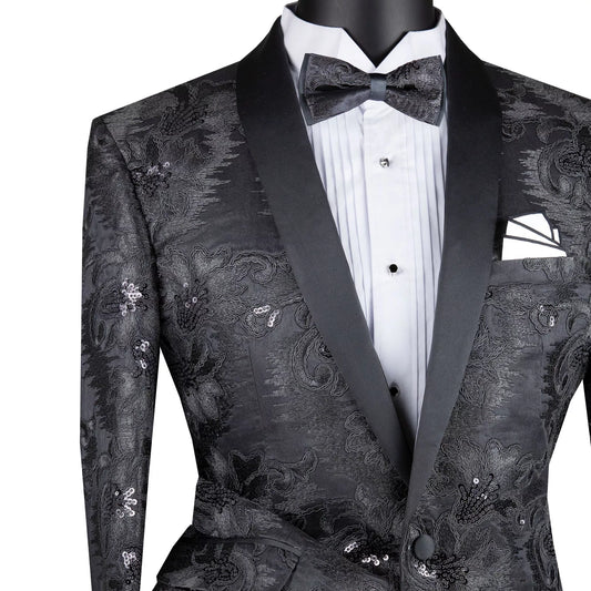 Vinci 2pc Slim Fit Paisley Print Suit (Black)