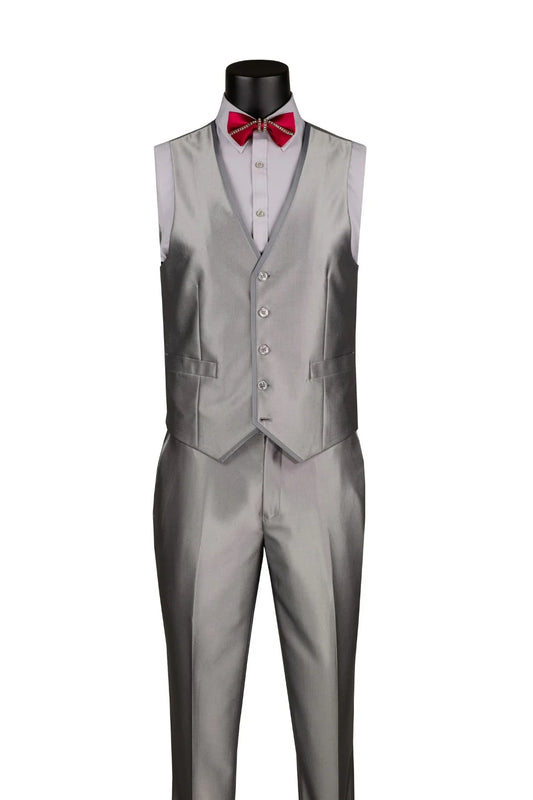 Vinci 3pc Slim Fit Satin Suit (Silver)