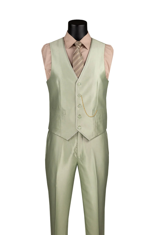 Vinci 3pc Slim Fit Satin Suit (Light Sage)