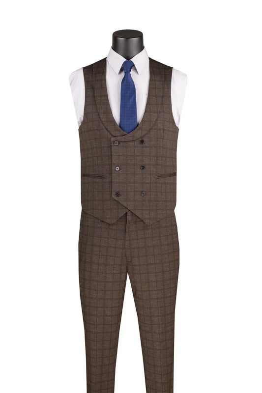 Vinci 3pc Slim Fit Super Stretch Suit (Brown)