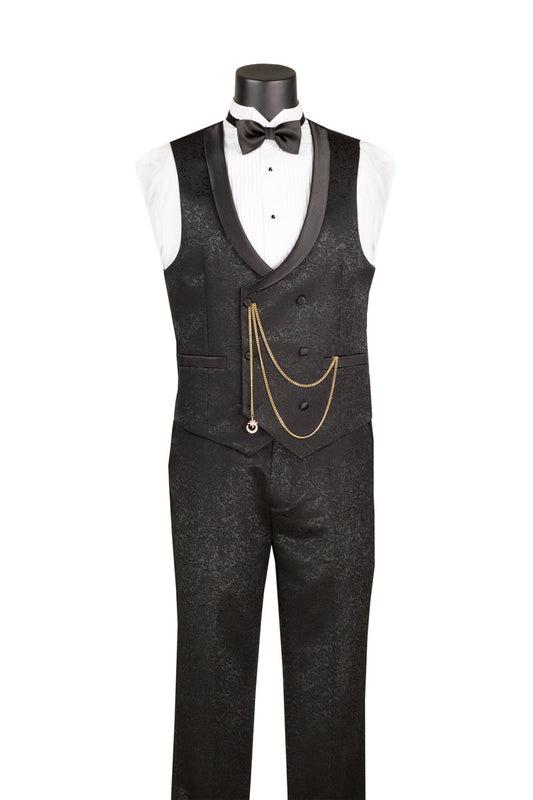 Vinci 3pc Modern Fit Fancy Pattern Tuxedo (Black)