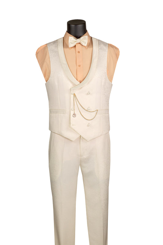 Vinci 3pc Regular Fit Tuxedo w/Matching Bow tie & Adjustable Waistband (White)