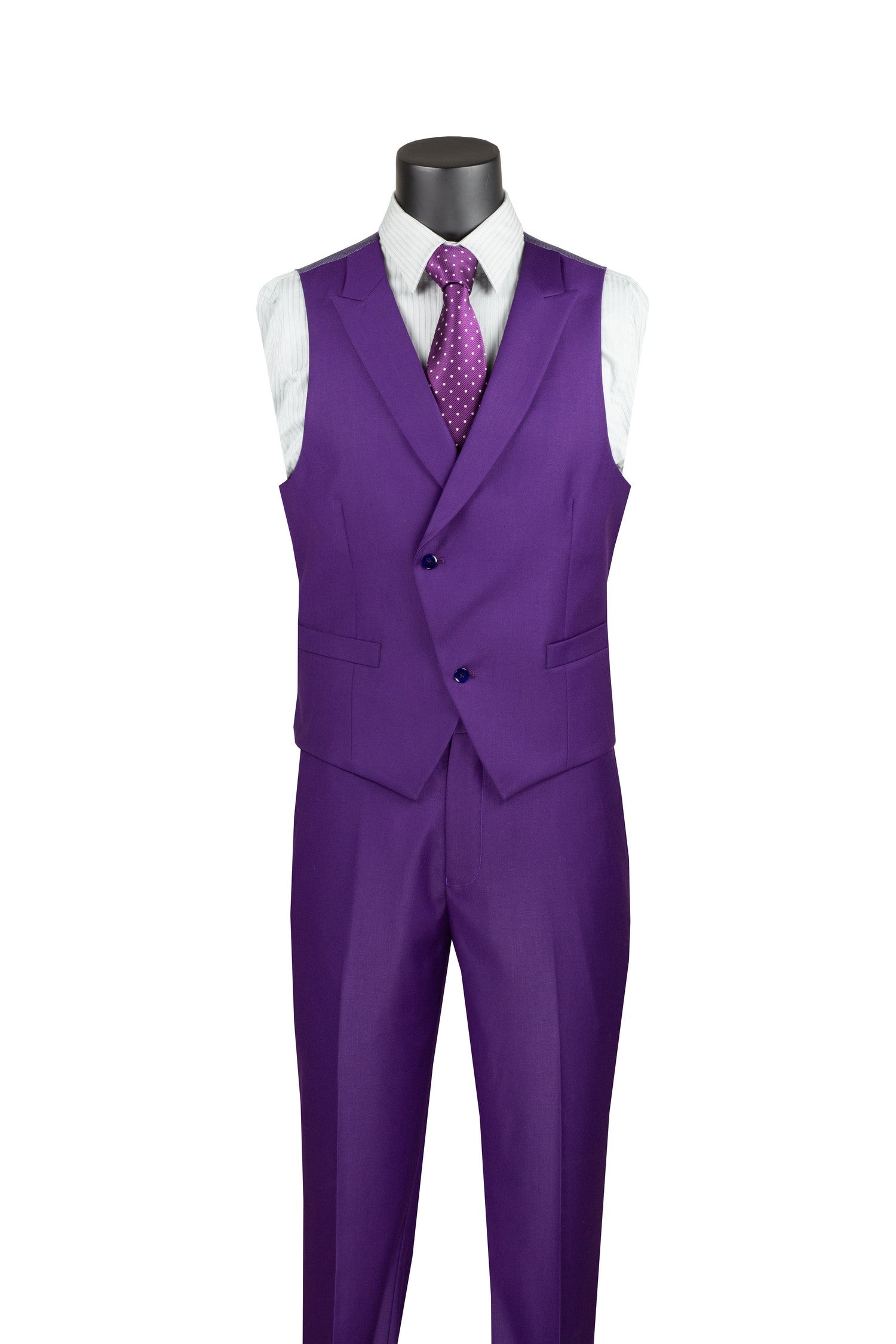 Vinci 3pc Modern Fit w/Lapel Vest & Adjustable Waistband Suit (Purple)