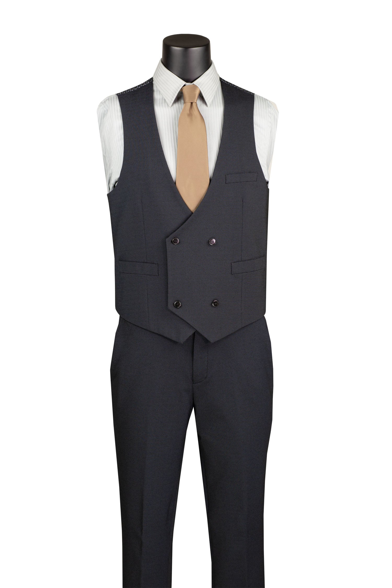 Vinci 3pc Super Stretch Fabric w/Adjustable Waistband Suit (Charcoal Black)