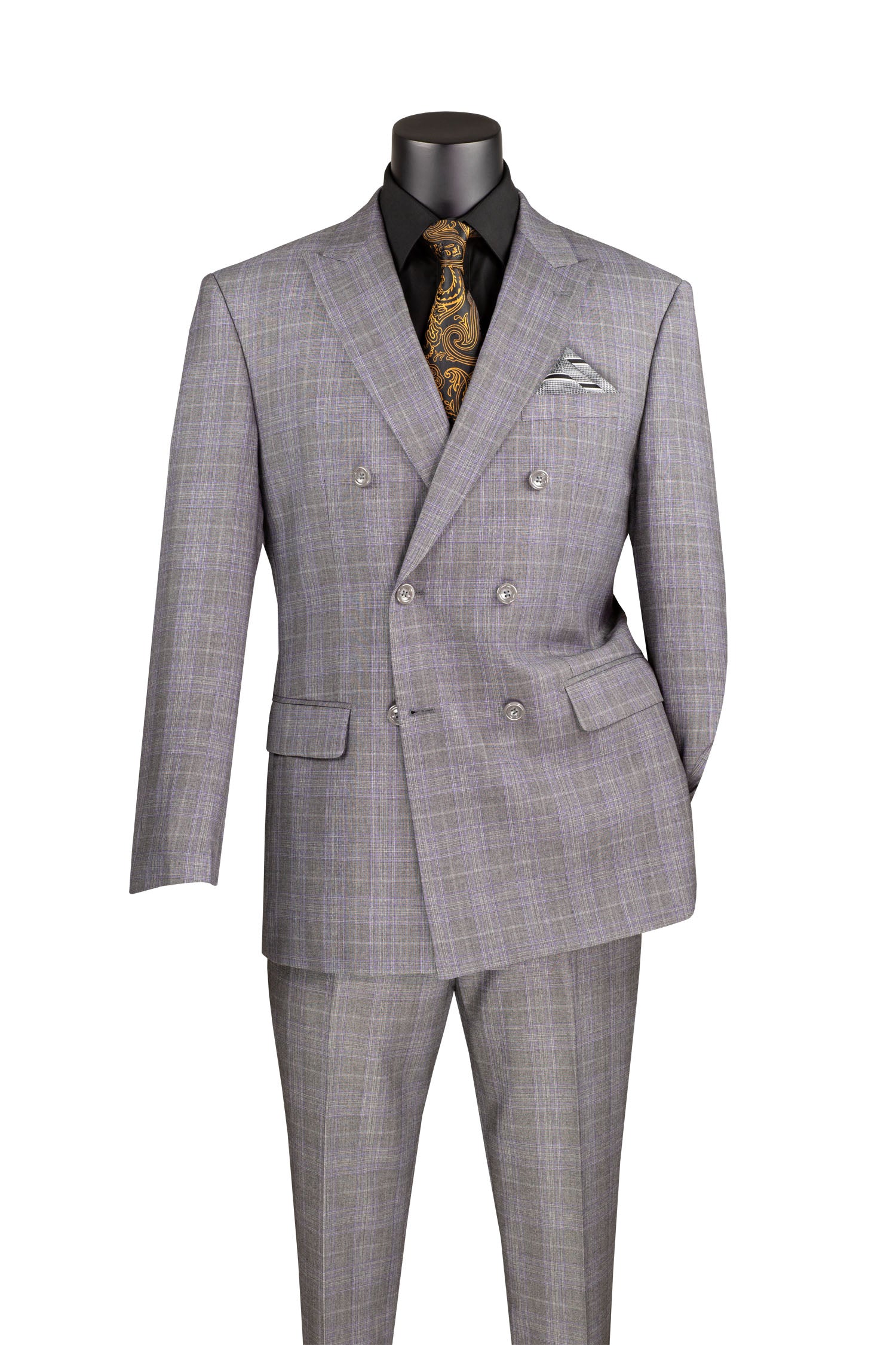 Vinci Classic Fit Double Breasted Glen Plaid Suit w/Adjustable Waistband (Gray)